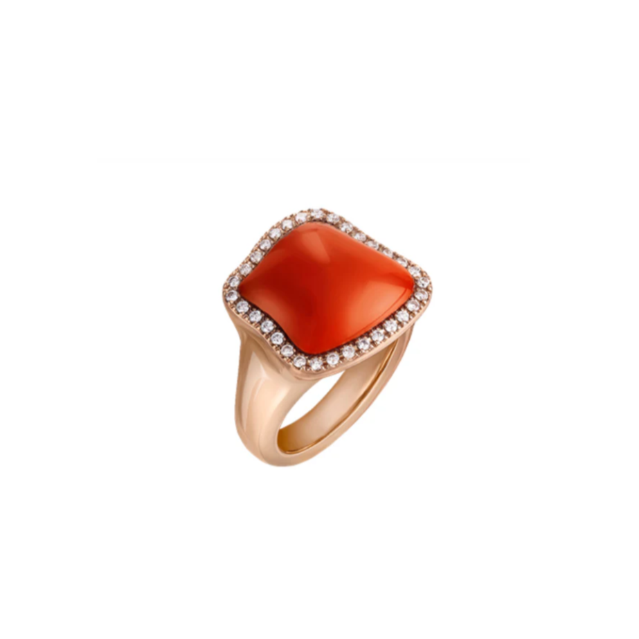 Enchantè ring in 18K rose gold, diamonds and red coral.