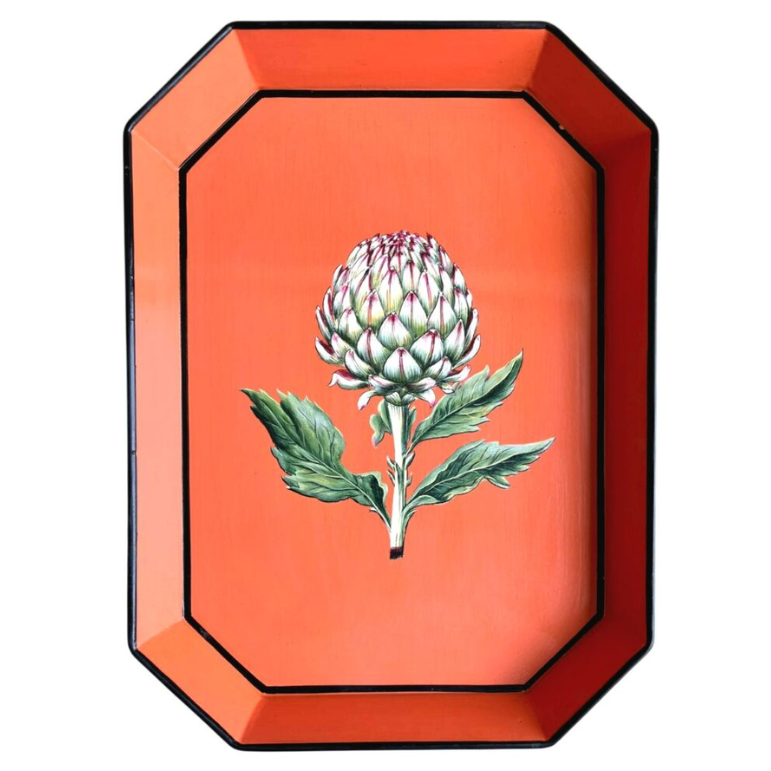 Les Ottomans Hand-painted Iron Tray in Orange with Artichoke