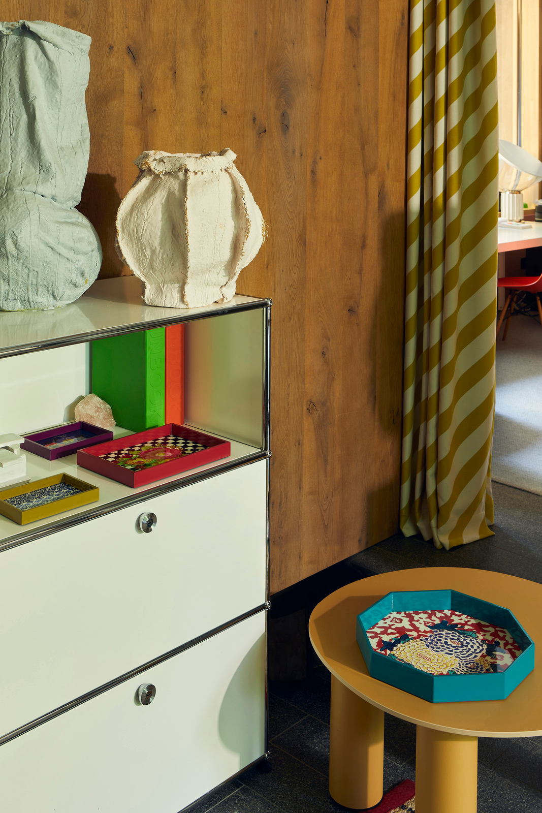 The tray is made in lacquered wooden and waterborne coating exclusively handcrafted in Vietnam. The trays are adorned with Lisa Corti’s iconic floral patterns, set against a backdrop of dynamic contrasts and vivid colours.