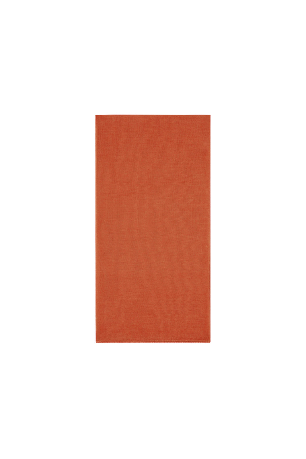 Enhancing the glowing sheen of light organza, rich rust napkins accent any table with exotic eloquence.