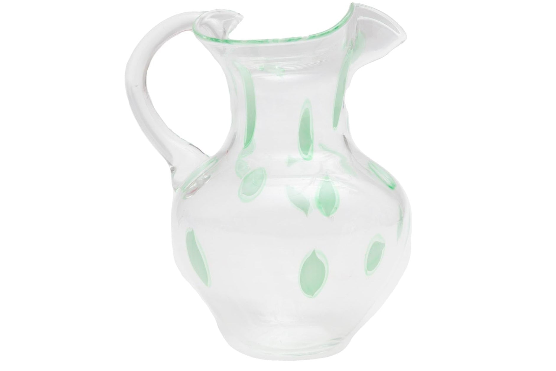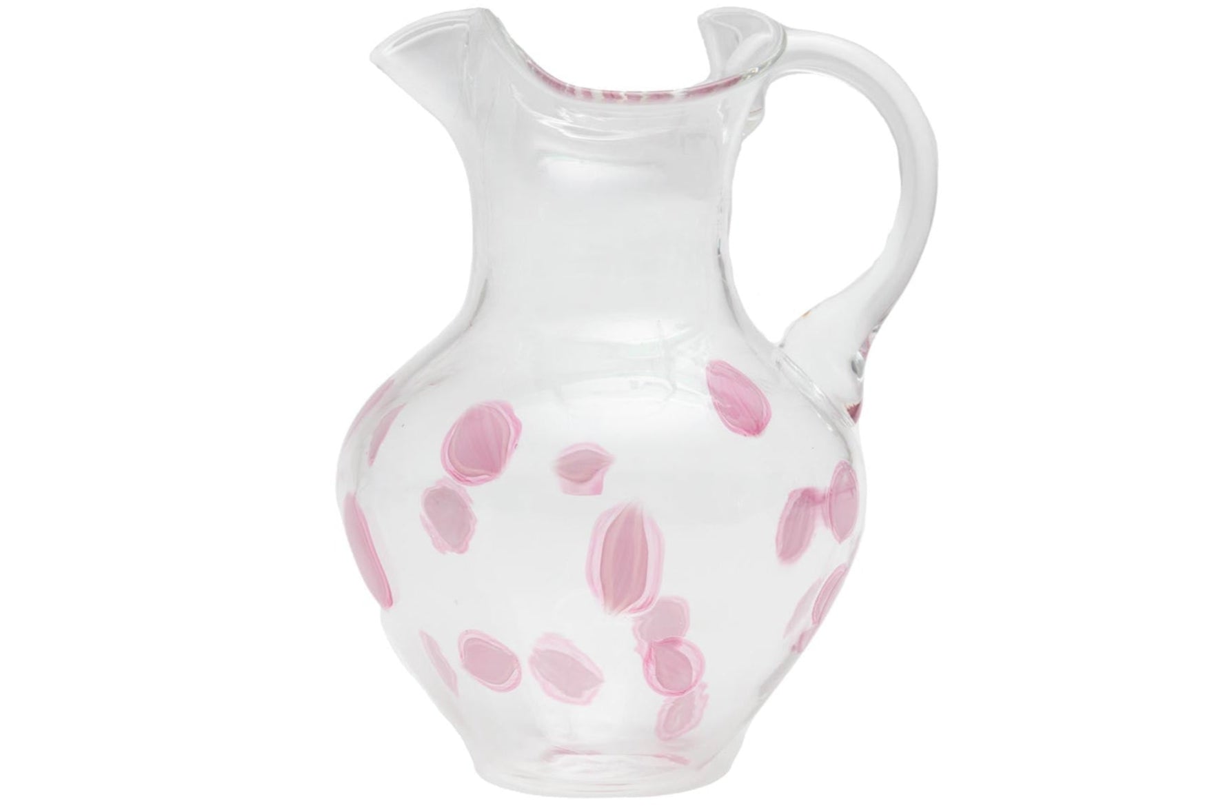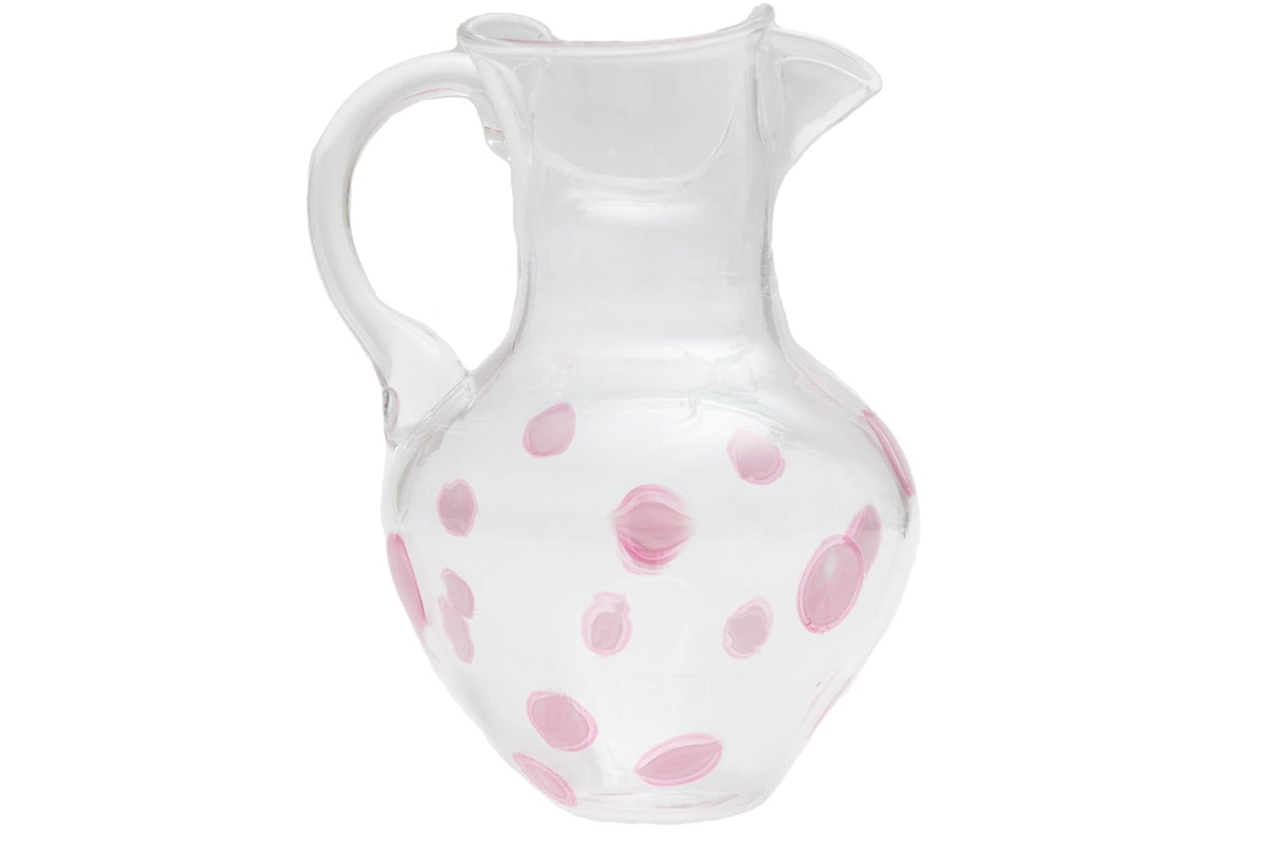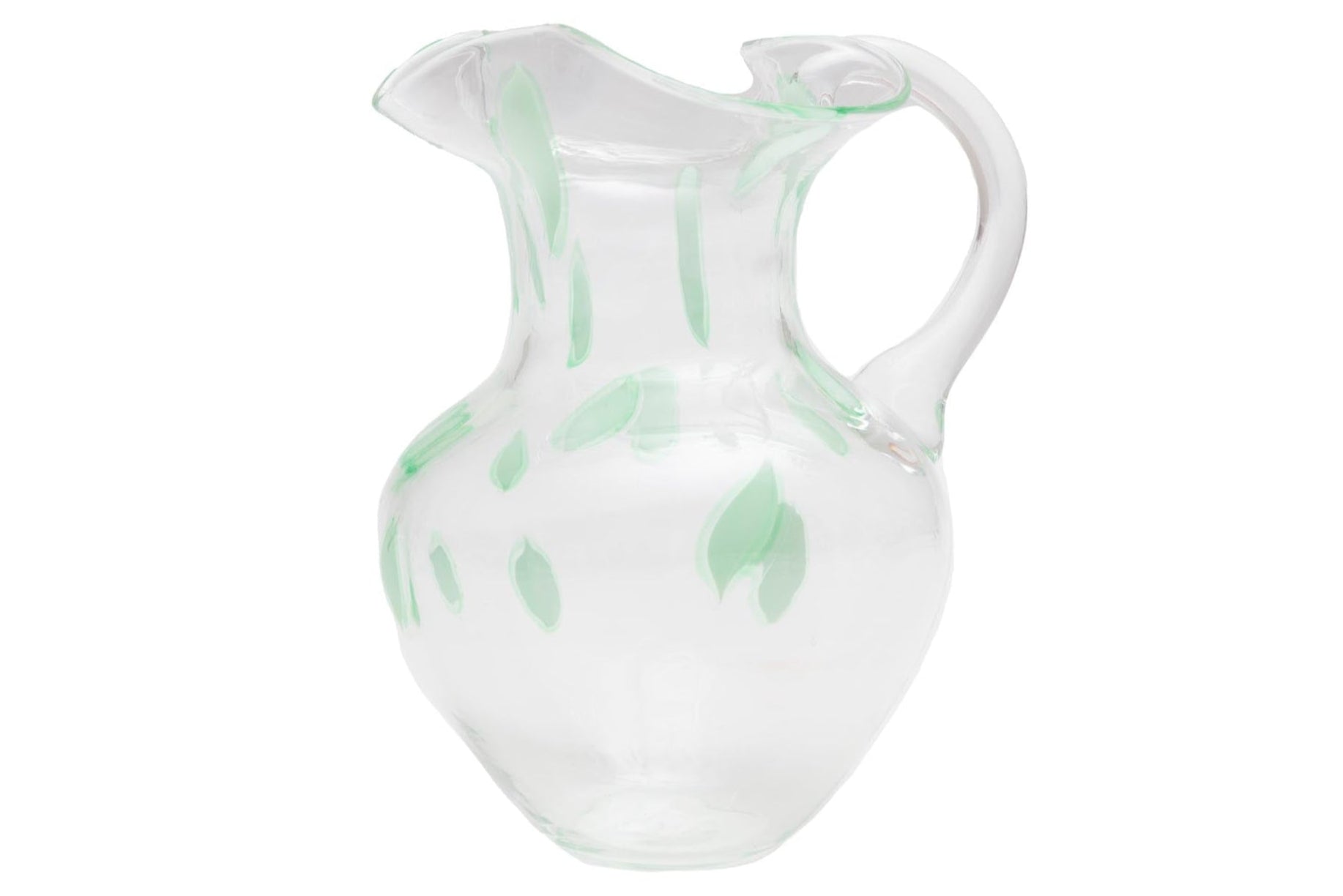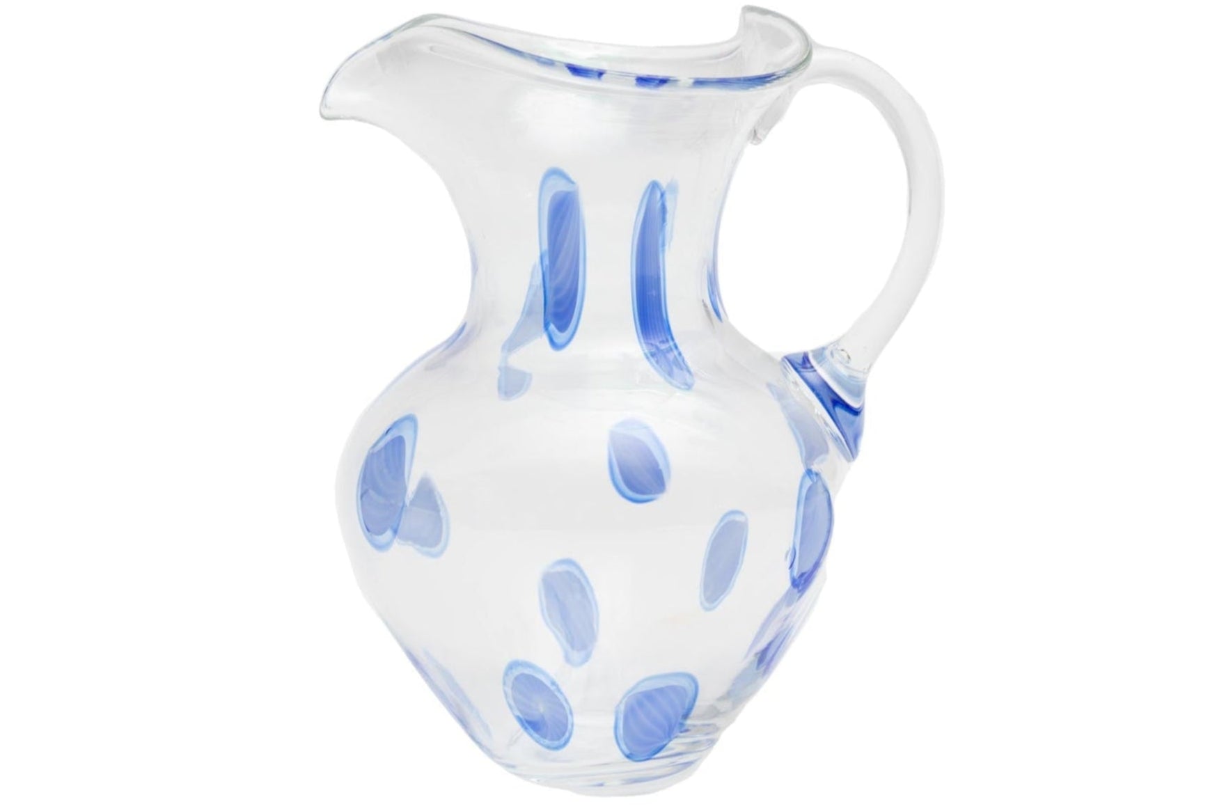 These festive tumblers are crafted by master glassbowers on the island of Murano. The pattern is created by adding colored glass chips to the molten glass before hand-blowing each piece. Each pitcher is a unique work of art and will have natural variations.