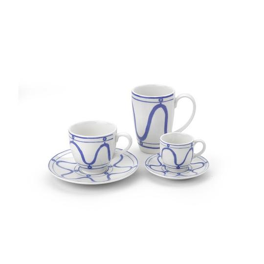 Coffee or tea cup in fine porcelain adorned with hand-painted Serenity pattern.