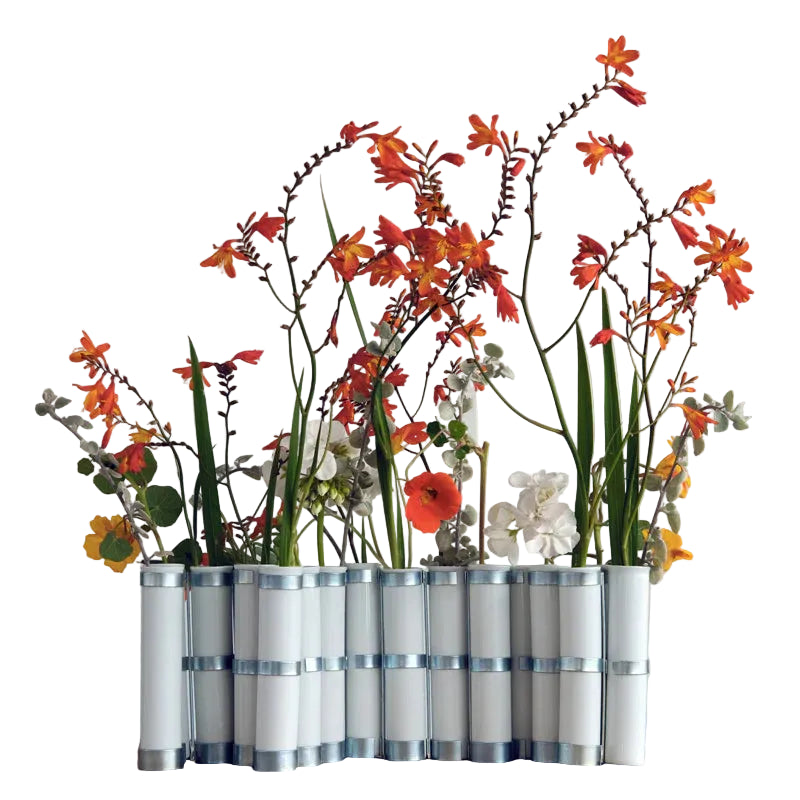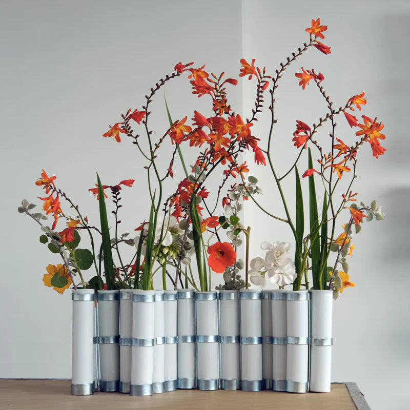 This reinvented icon will continue to inspire us with poetry!Inspired by Japanese ikebana, this vase isolates each flower in a tube to better showcase it. Articulated by metal rings, the April Vase has a variable geometry. It adapts to the flowers it holds and the surfaces on which it rests. Thus, it gives everyone the great pleasure of creating a beautiful bouquet.